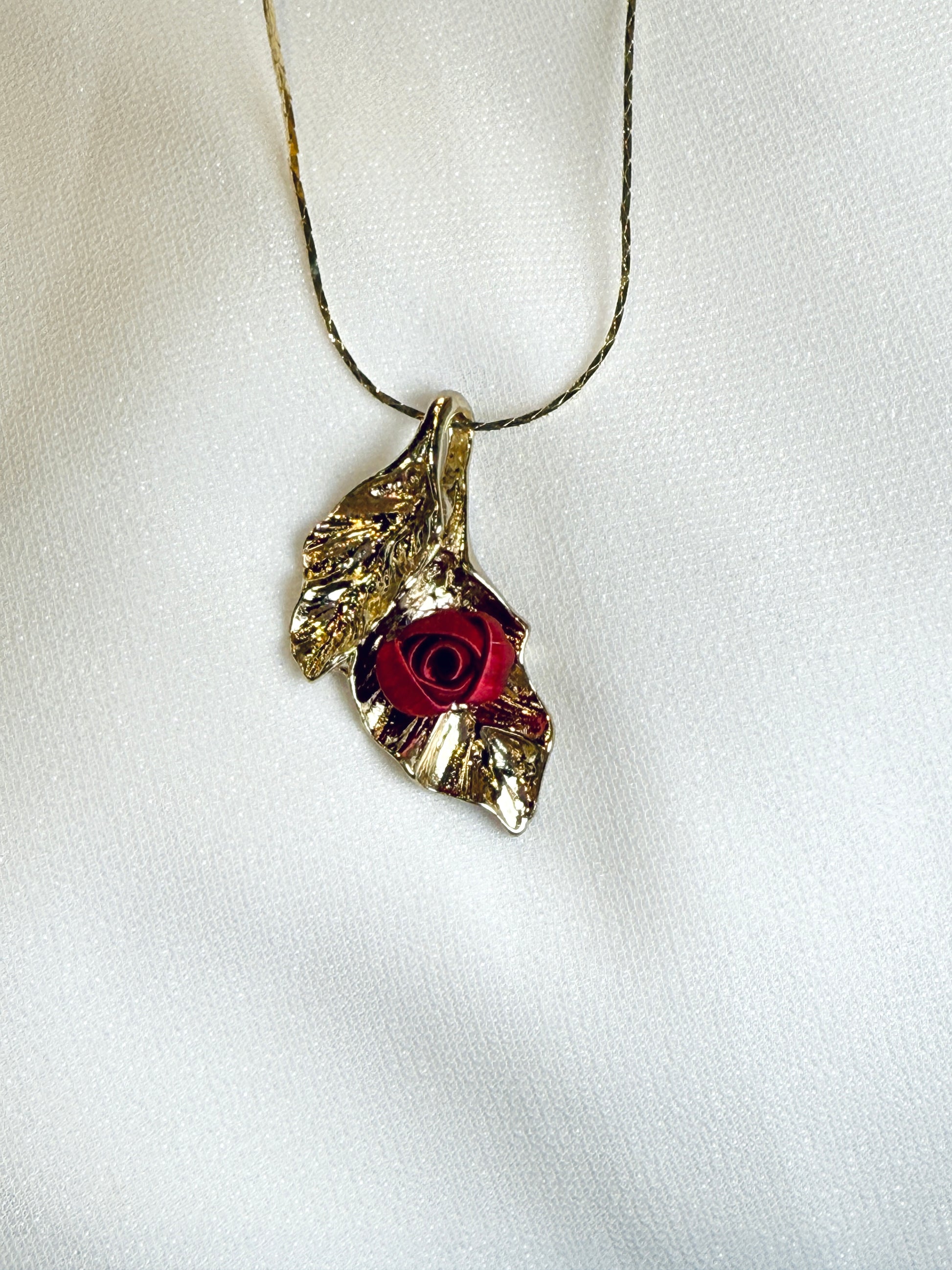 香檳金系列-暗紅迷你玫瑰-香檳金金葉項鍊